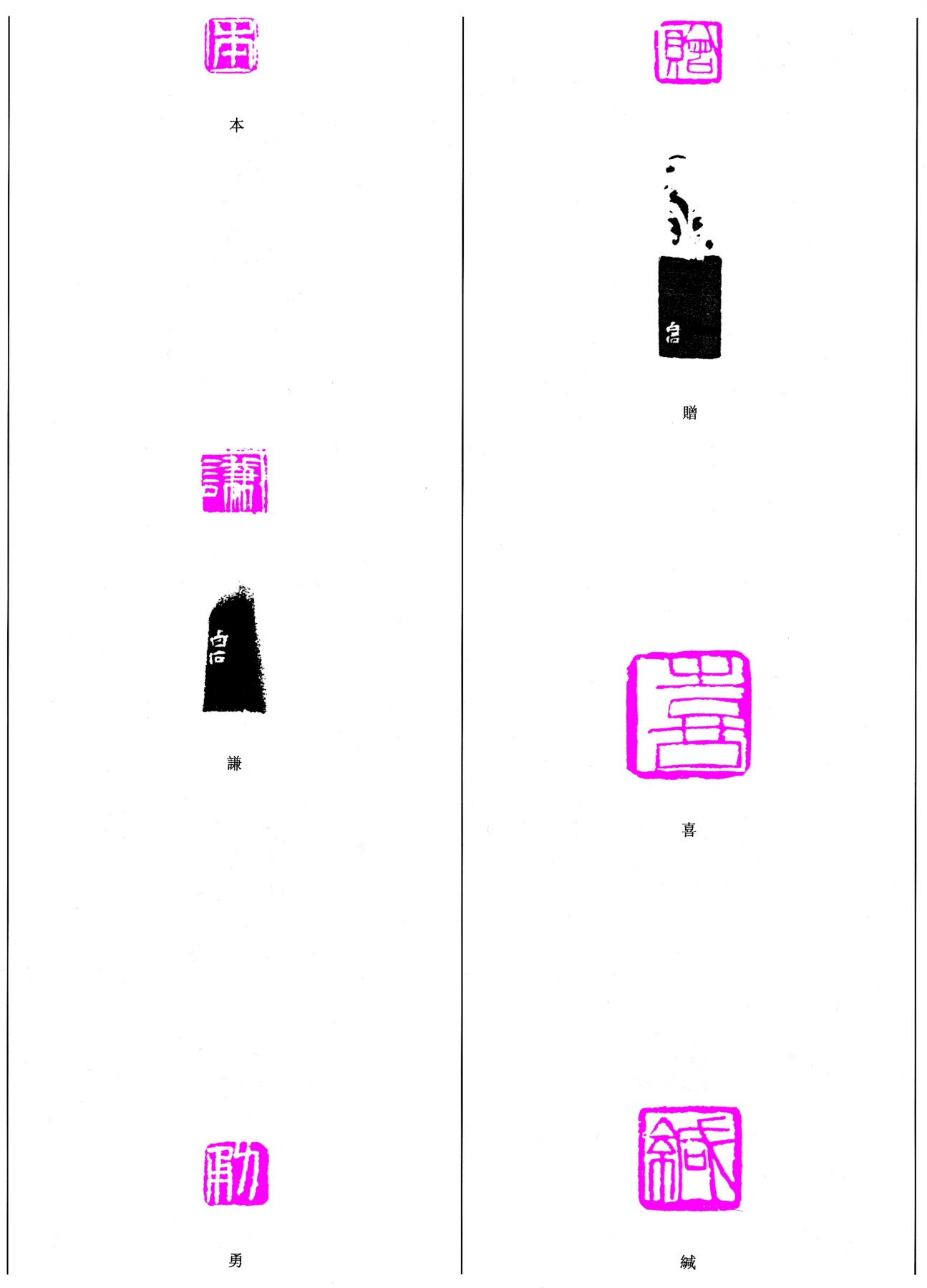 本/贈/喜/謙/勇/緘