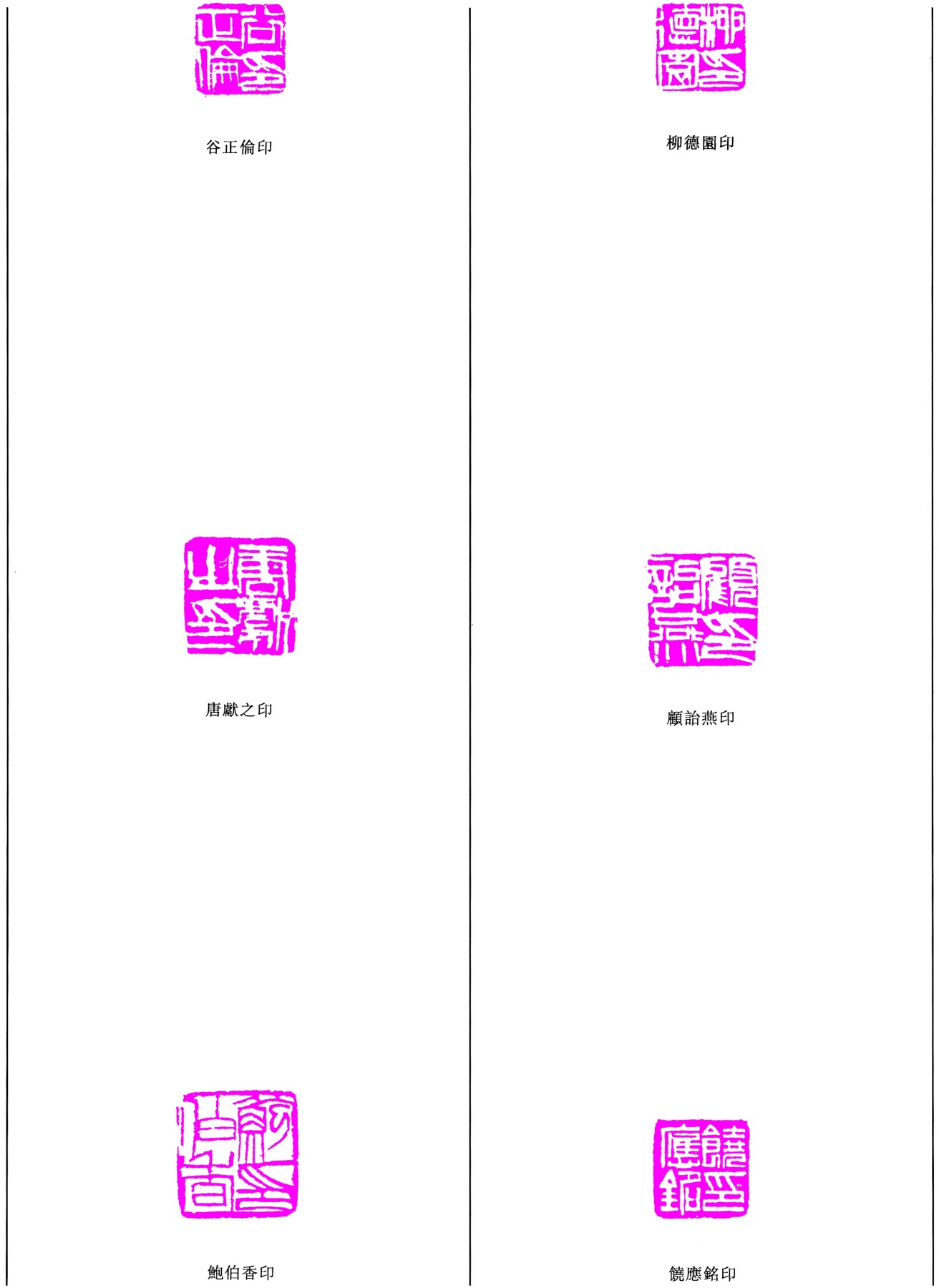 谷正倫印/唐獻之印/柳德園印/鮑伯香印/顧詒燕印/饒應銘印