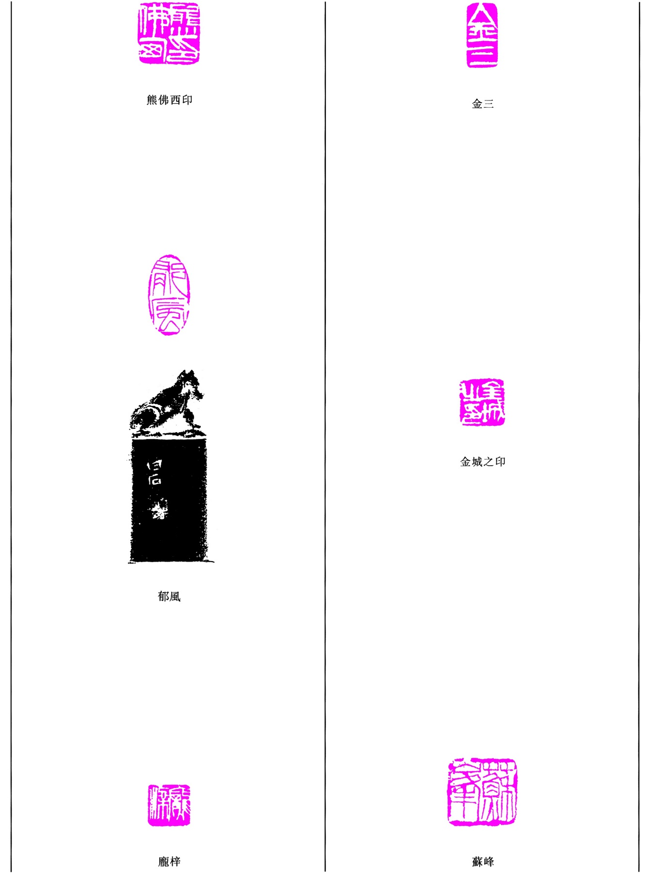 熊佛西印/金三/金城之印/蘇峰/龐梓/郁風