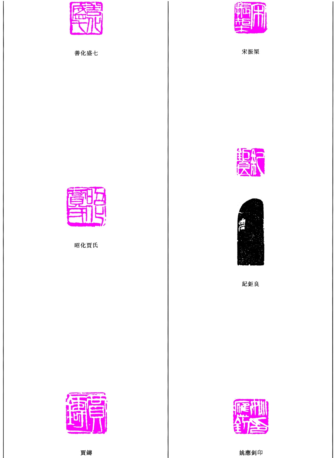 善化盛七/宋振榘/紀鉅良/姚應劍印/夏鑄/昭化賈氏