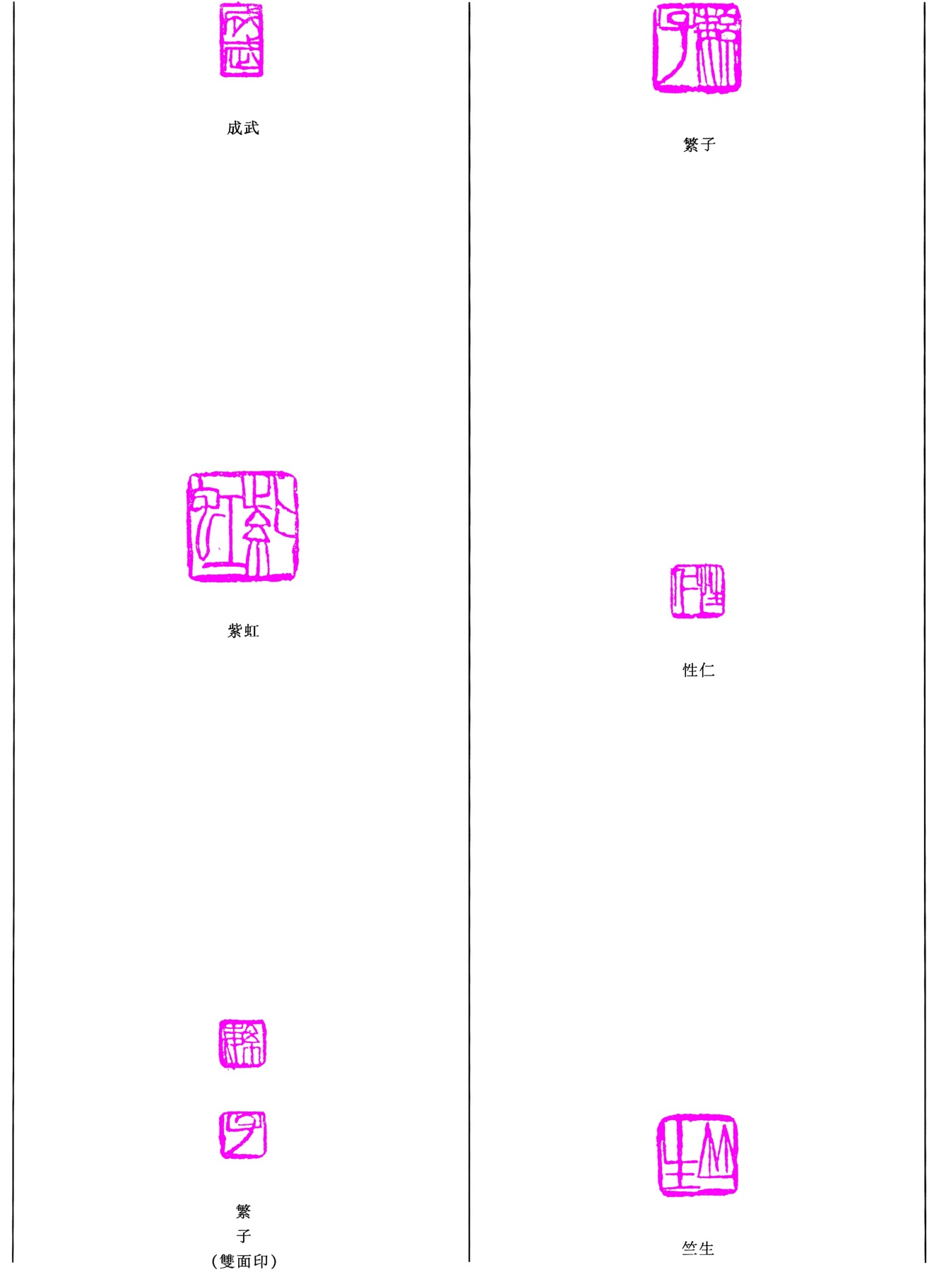 成武/紫虹/繁子(雙面印)/繁子/性仁/竺生